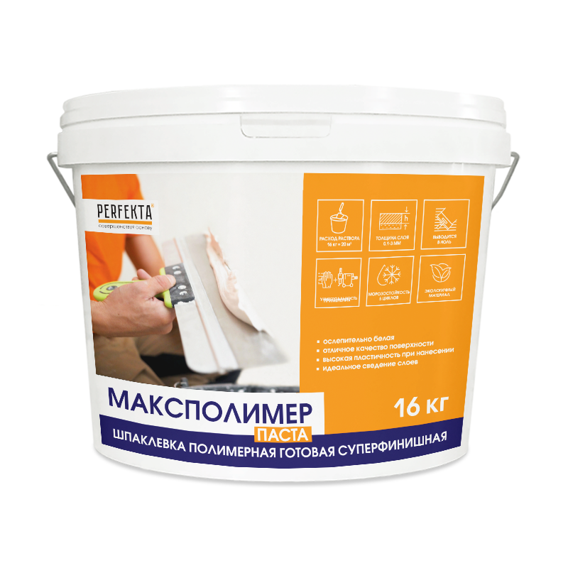 Шпатлевка готовая полимерная Максполимер Паста предназначена для экстра качественной подготовки стен и потолков под последующую окраску, нанесение тонкослойных декоративных штукатурок (например, венецианская или с эффектом шелк) или для поклейки обоями. Может применяться для создания текстуры.